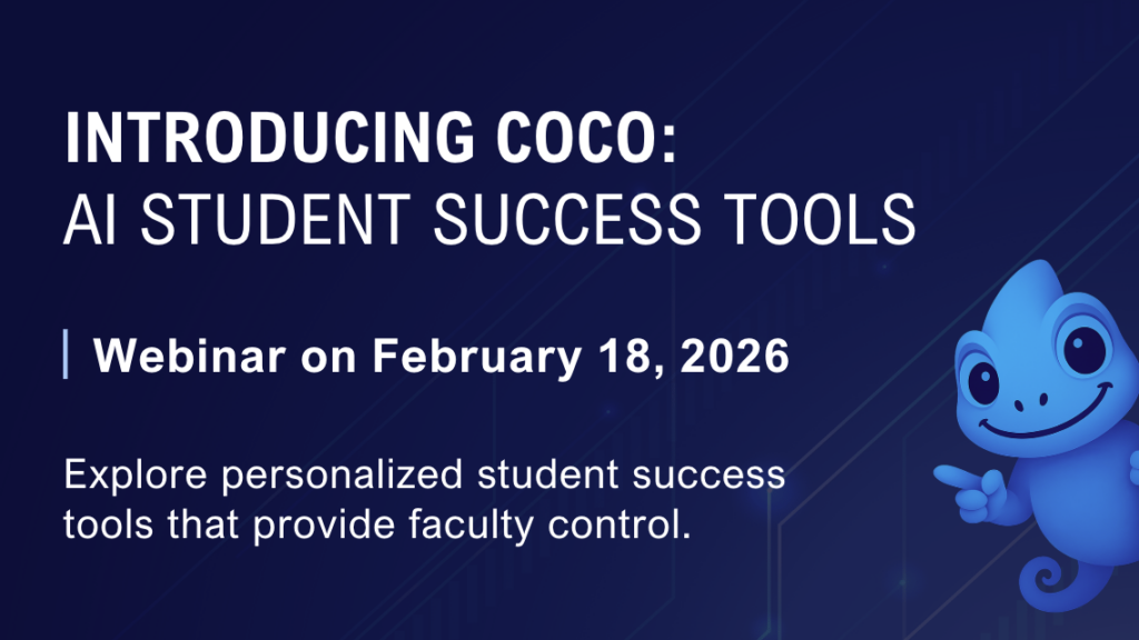The student success experience is being reimagined! We have combined proprietary AI technology with institution-specific content to create a suite of companions designed to make student support more efficient, effective, and accessible. Join us on Wednesday, February 18th at 2PM ET to learn more! This webinar is designed to show you how CoCo provides personalized, round-the-clock support so your faculty and staff can focus on high-impact engagement while students get the instant guidance they need.